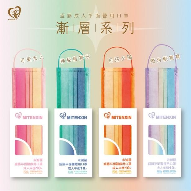 載入中...請稍候...台灣天心成人平面醫療口罩 漸層系列 (10片/盒)